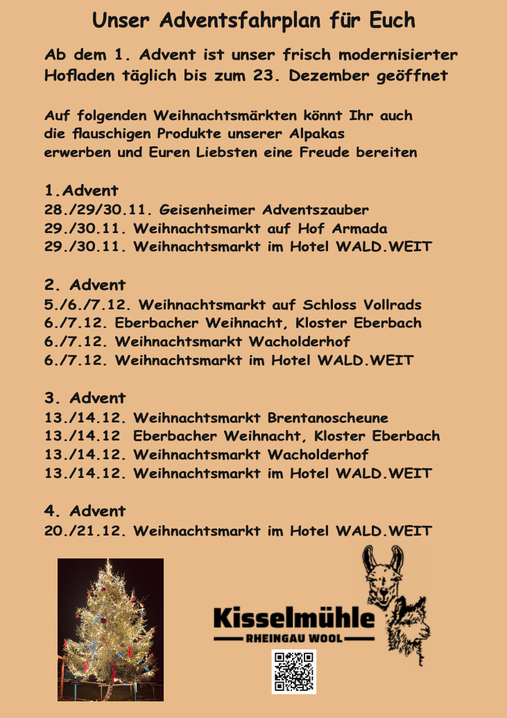 Wir freuen uns, Euch auf unserer Internetpräsenz der Kisselmühle begrüßen zu dürfen! Die Kisselmühle, gelegen in einem kleinen Tal, 1500 Meter hinter dem Zisterzienserkloster Eberbach, in dem von der Natur verwöhnten Rheingau. Unsere seit 1990 bestehende Zucht, beheimatet zur Zeit ca. 100 Alpakas, Lamas, Trampeltiere & Dromedare, Bennet Kängurus, Tinkerpferde und viele weitere Tiere – wir freuen uns auf Euren Besuch.