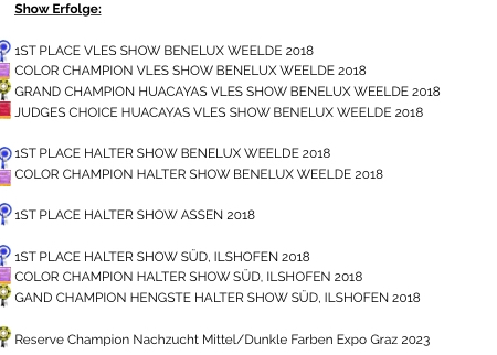 Ein Hengst der einzigartig in Europa ist – er steht für Dichte und gleichbleibende Feinheit. Im Alter von 2 Jahren wurde bei Tiger eine Skin Biopsie durchgeführt – seine Dichte von 81.3 Fasern pro mm2 ist beeindruckend und sucht seinesgleichen.
