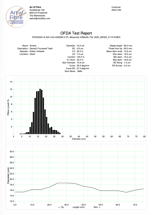 attraktive Jungstute mit einer sehr feinen Faser die gleichmäßig über den ganzen Körper verteilt ist mit einer tollen Stapelbündelung und kompaktem Körperbau