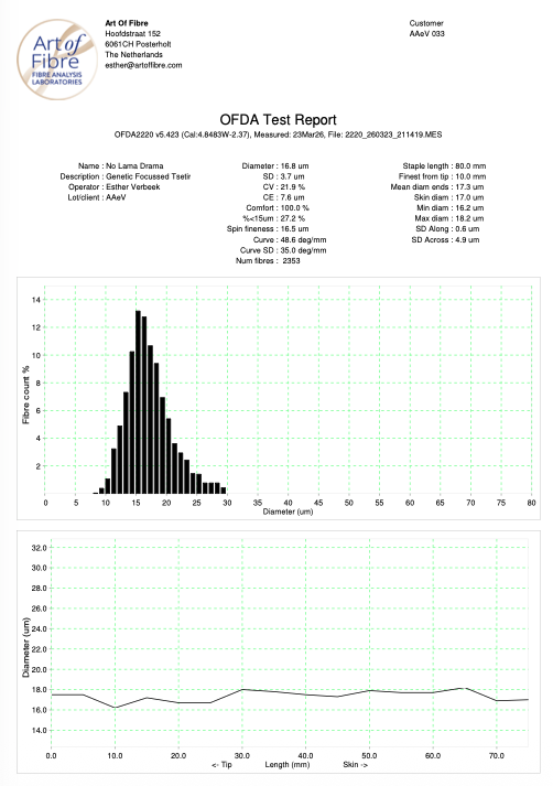 attraktive Jungstute mit einer sehr feinen Faser die gleichmäßig über den ganzen Körper verteilt ist mit einer tollen Stapelbündelung und kompaktem Körperbau
