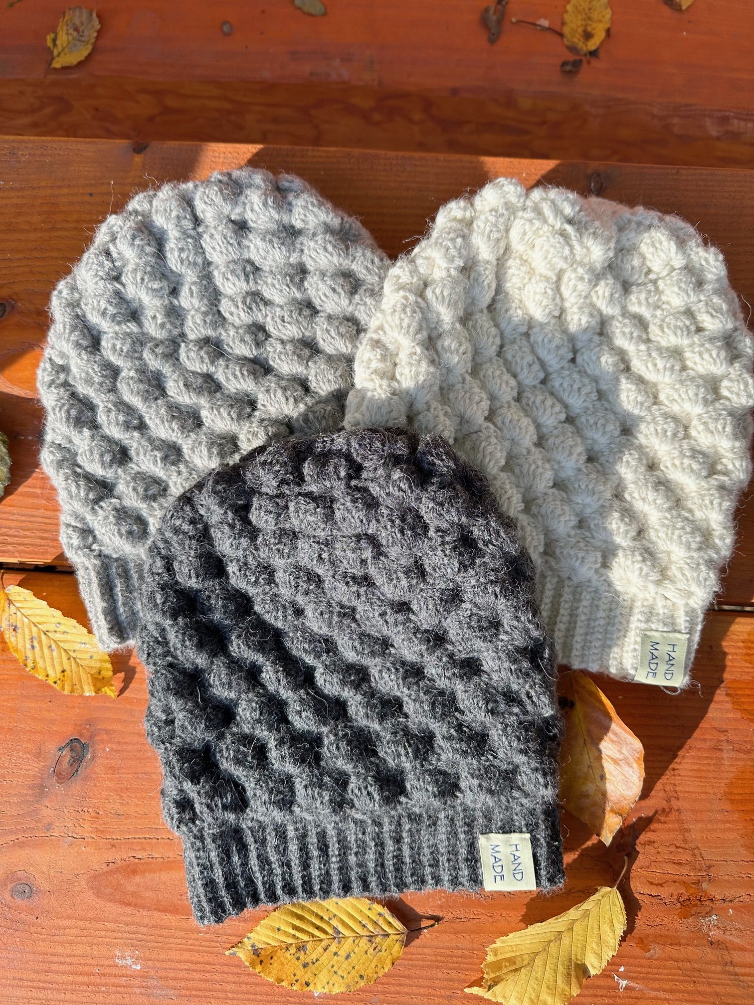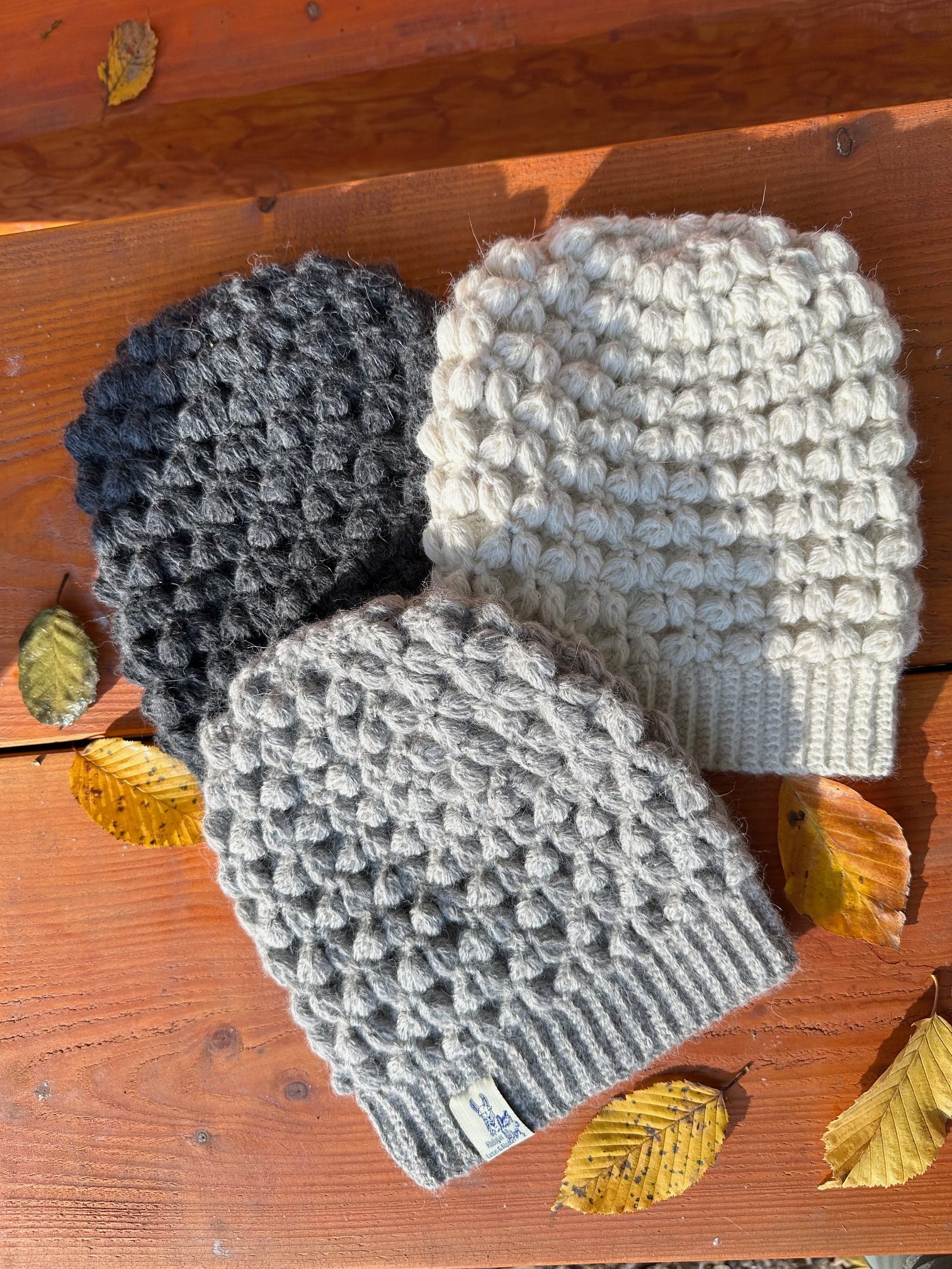 Tolle einfarbige gehäkelte Wendemütze, 100% Babyalpaka, mit zwei verschiedenen Mustern zu tragen, onesize für Erwachsene