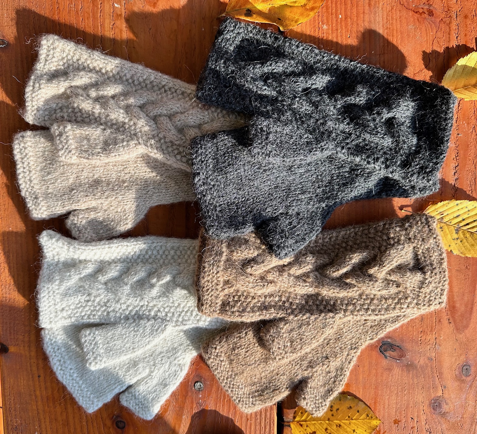 kuschelig weiche Pulswärmer mit Zopf auf der Vorderseite, handmade, 100% Babyalpaka, für Erwachsene onesize